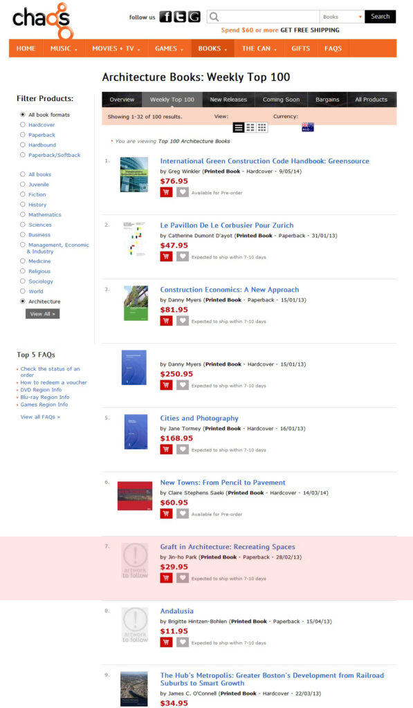 ‘Graft in Architecture’ chaos.com-건축서적 부문 7위 11월 19일 기준
