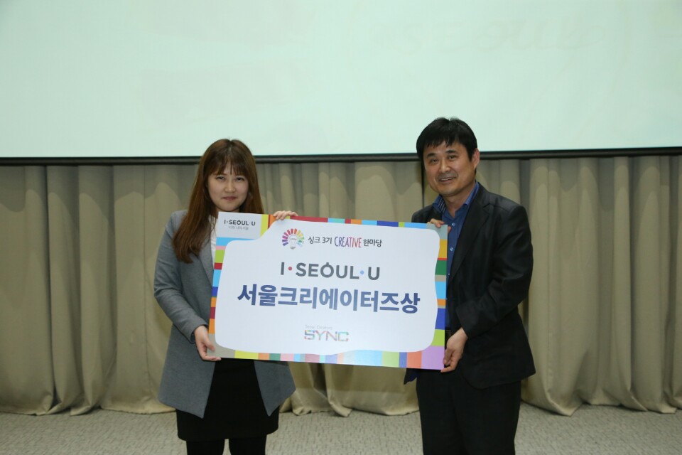 2015년 4월 22일 서울시에서 주관하여 ‘여러 사람들의 아이디어를 모아 살기 좋은 서울을 만들자’는 의도로 기획된 Seoul&You Network Creaters 성과 발표 및 시상식에 참석하였습니다. 저희 작품 The GIFT는 서울 크리에이터즈상을 수상하였습니다.